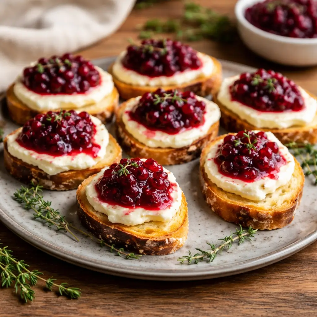 Use whole-grain or sourdough baguette for added flavor. For a sweeter variation, substitute cranberry sauce with fig or apricot jam. Toast the baguette slices in advance and assemble just before serving.