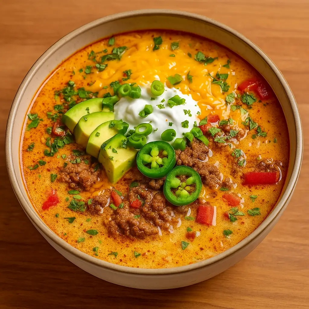 Creamy Keto Taco Soup with Ground Beef and Cheese