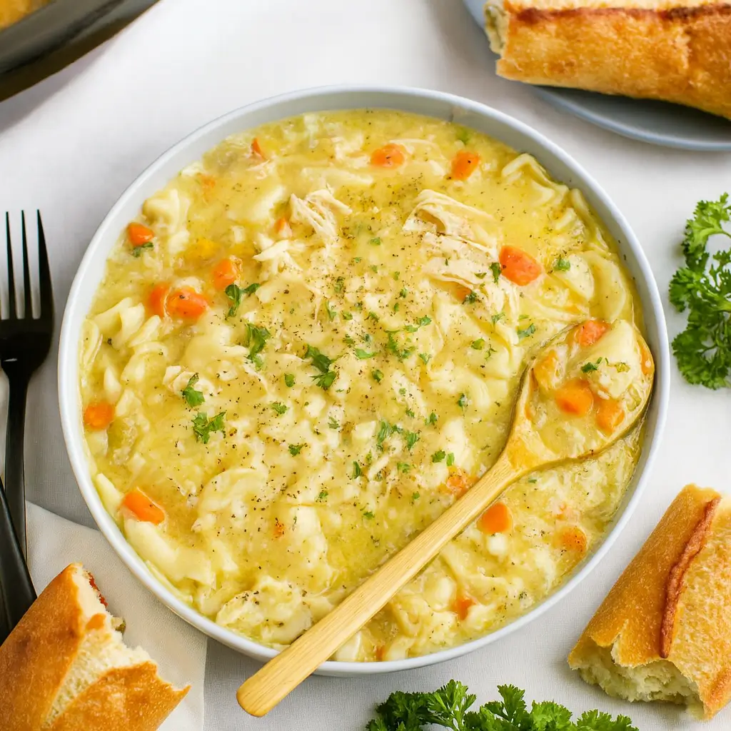 Crockpot Creamy Chicken Noodle Soup is one of those cozy, soul-hugging meals that turns even the busiest weekday into something special. With this crockpot creamy chicken noodle soup recipe, you can toss in your ingredients, go about your day, and come home to a rich, velvety soup that tastes like it simmered all day under grandma’s watchful eye. It’s the kind of meal that makes everyone at the table quiet for a minute—that magical silence that means “wow, this is good.” Perfect for chilly nights, sniffly kids, or anyone who needs a warm hug in a bowl.