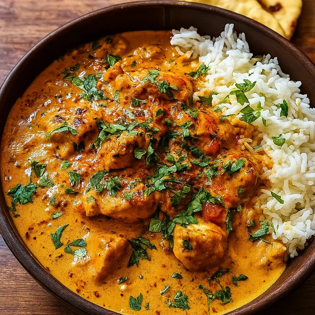 Slow-cooked chicken tikka masala with coconut milk creates a rich, creamy sauce that’s lighter than traditional versions. Tender chicken absorbs aromatic spices for restaurant-quality flavor.