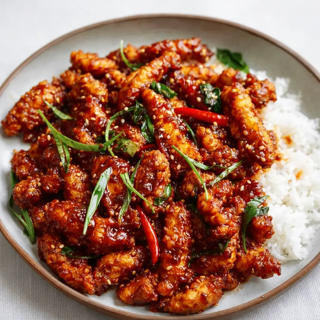 Dragon Chicken is a popular Indo-Chinese fusion dish that’s equal parts crispy, spicy, and irresistible. It typically features thinly sliced chicken breast or thigh pieces that are marinated, lightly battered, and fried until golden. The magic happens when those crispy morsels meet a bold sauce made from garlic, ginger, soy sauce, ketchup, and chili paste. The sauce has that signature tangy-sweet heat that keeps you coming back for more. Originally served in Indian-Chinese restaurants, it’s now a favorite for home cooks who crave something spicy and satisfying without complicated steps. Think of it as the fiery cousin of your favorite honey garlic chicken—but with a dragon’s breath of flavor.