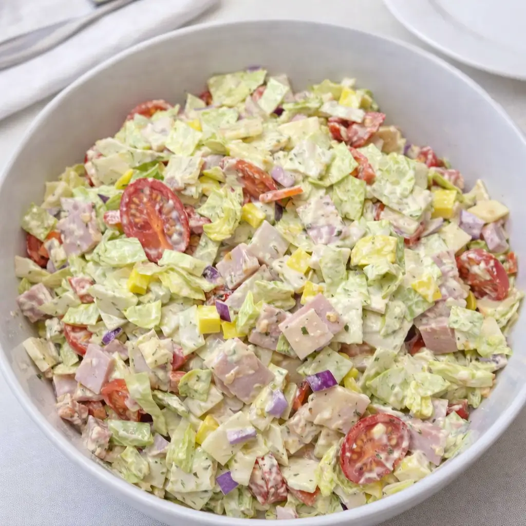 The Easy Italian Grinder Salad is basically the deconstructed version of a beloved Italian grinder sub. Instead of piling everything into a hoagie roll, we’re chopping it up into a fresh, hearty salad. It’s got all the same bold flavors—salami, pepperoni, ham, turkey, provolone, and that tangy Italian dressing—but in a lighter, more refreshing way. If you’ve ever had one of those old-school deli sandwiches that drips with flavor, this is that… just reinvented. It’s got crunch from iceberg lettuce, richness from the meats and cheese, and a creamy-tangy dressing that coats every bite.