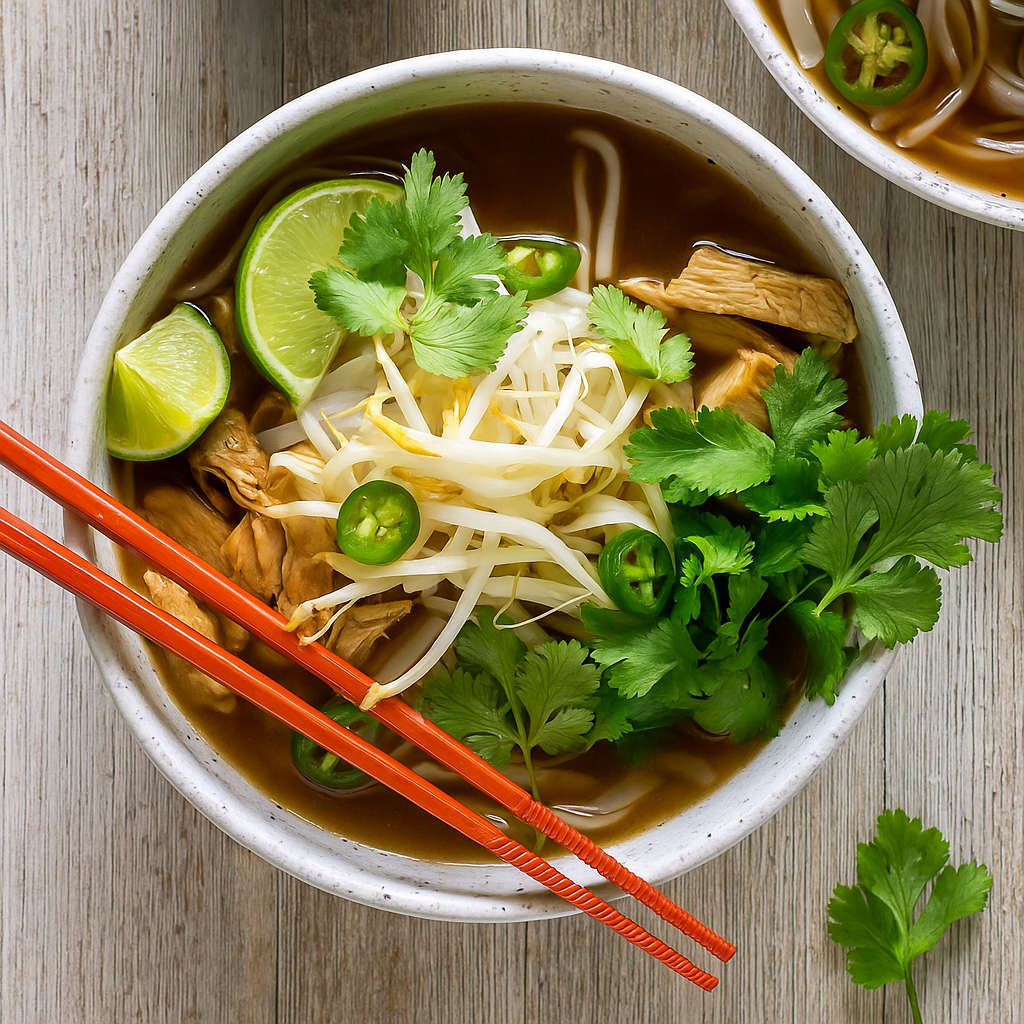 This Easy Pho Recipe (or “pho ga”) is the simplified cousin of traditional Vietnamese pho, which typically simmers for hours. Here, we take a few delicious shortcuts—using store-bought rotisserie chicken and rich chicken stock—to create that same signature depth in a fraction of the time. The broth is infused with star anise, garlic, ginger, and fish sauce, giving it that sweet-savory, slightly spicy aroma that makes pho so irresistible. Pair it with chewy rice noodles and fresh toppings like cilantro, Thai basil, and bean sprouts, and you’ve got the perfect balance of textures and flavors in every spoonful. It’s comfort food with character.