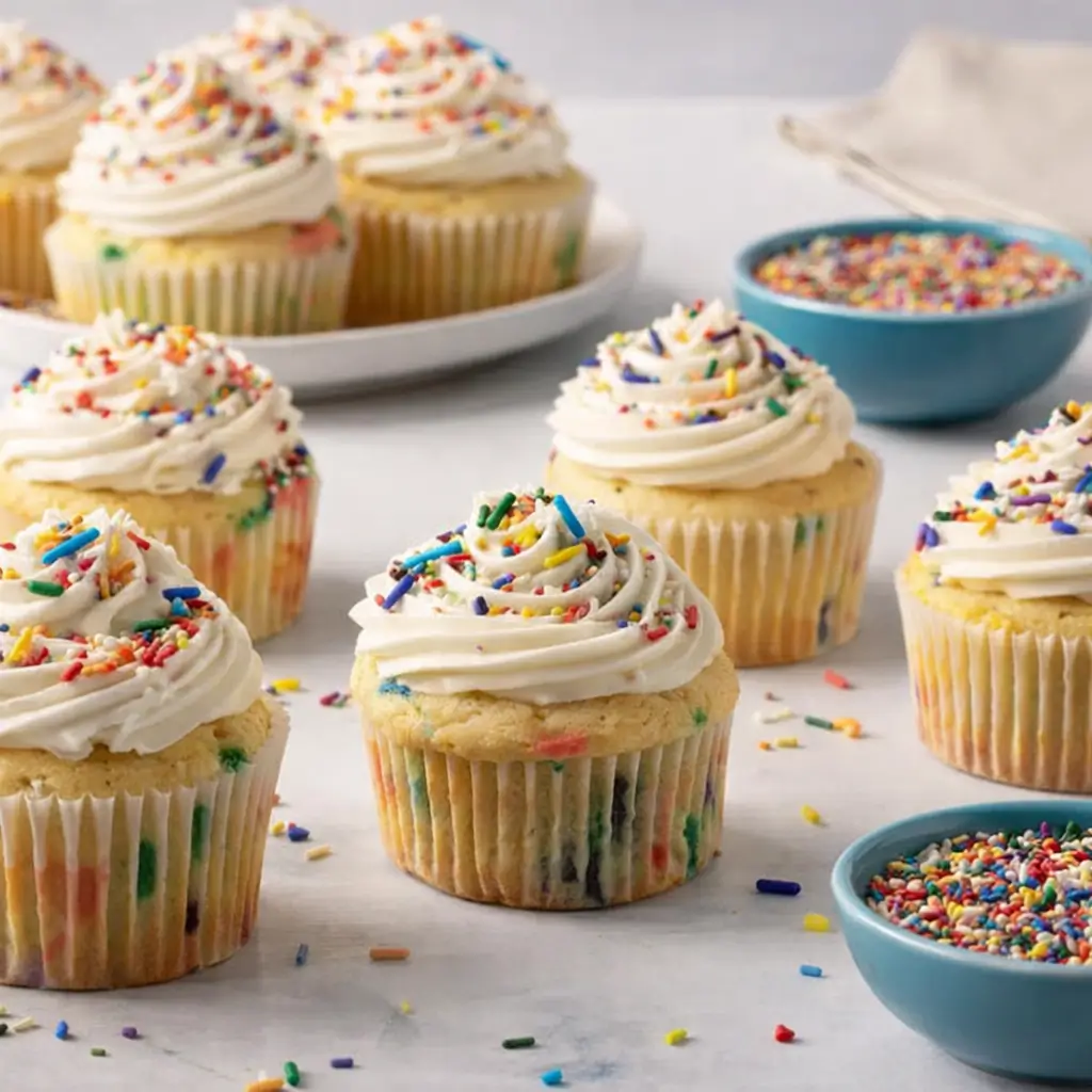 Do not overmix the batter to maintain a tender crumb. Ensure all dairy and eggs are at room temperature for best results. Gently fold in sprinkles to avoid color bleeding. Allow cupcakes to cool completely before frosting. Adjust frosting consistency to suit your decoration method.