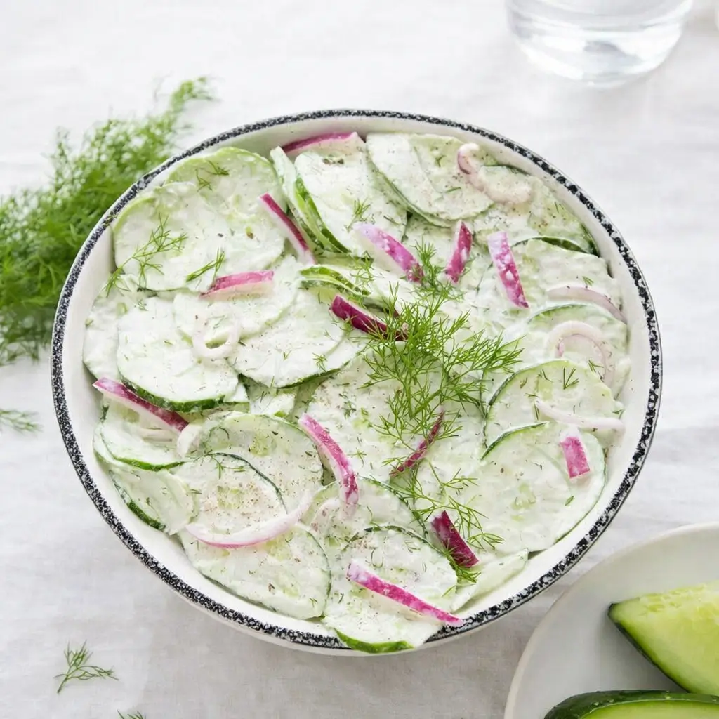 German Cucumber Salad is one of those humble recipes that proves simple can be spectacular. It’s cool, creamy, herby, and tangy all at once—and it complements just about any main course you can think of. Whether you’re preparing it for a backyard cookout or a quiet family dinner, it brings that fresh, homemade touch that reminds everyone why real food made from scratch just tastes better. It’s fast, easy, and delightfully refreshing—everything you want in a summer salad. And once you’ve tried this version, you’ll never look at plain cucumbers the same way again.