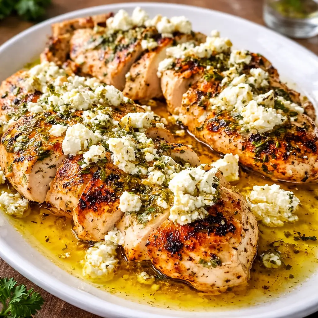 A bright and flavorful Greek-style chicken dish featuring a zesty lemon-garlic marinade and baked feta for an easy, satisfying meal.
