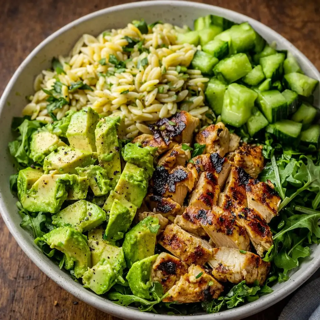 This Grilled Chicken Orzo Salad is a fresh and satisfying Mediterranean-inspired dish featuring tender grilled chicken, creamy avocado, feta cheese, and orzo pasta tossed in a bright citrus vinaigrette. Perfect for summer meals, picnics, or meal prep.
