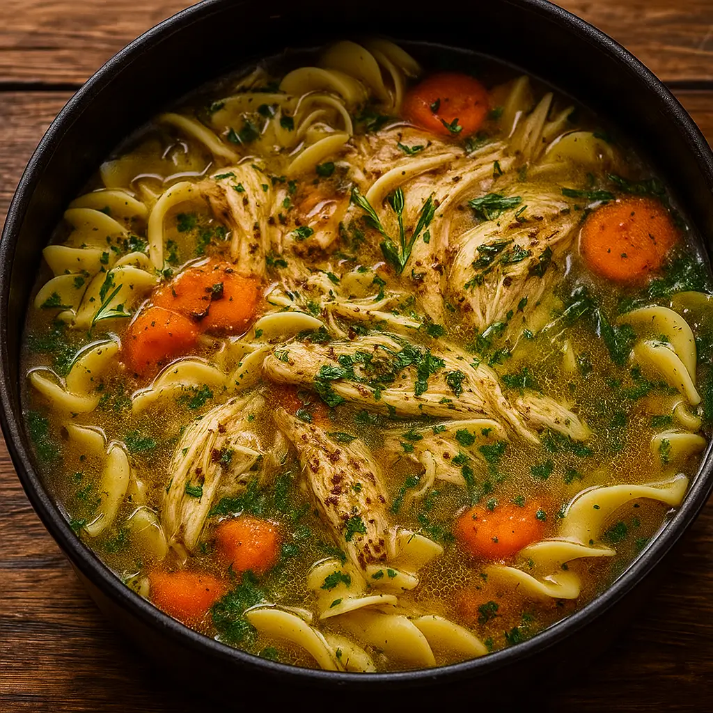 Homemade Chicken Noodle Soup is a timeless dish that’s as comforting as a warm hug. It’s made from simple ingredients like chicken, broth, veggies, and noodles—but when they come together, something truly special happens. Each spoonful brings the perfect balance of savory broth, tender chicken, and soft noodles. While there are countless variations (some families guard their secret versions like treasure), the heart of the dish stays the same: it’s about warmth, nourishment, and love. This version keeps things simple but flavorful—exactly how grandma would have done it. Whether made with rotisserie chicken or homemade stock, it’s the kind of meal that makes everyone at the table sigh with contentment.