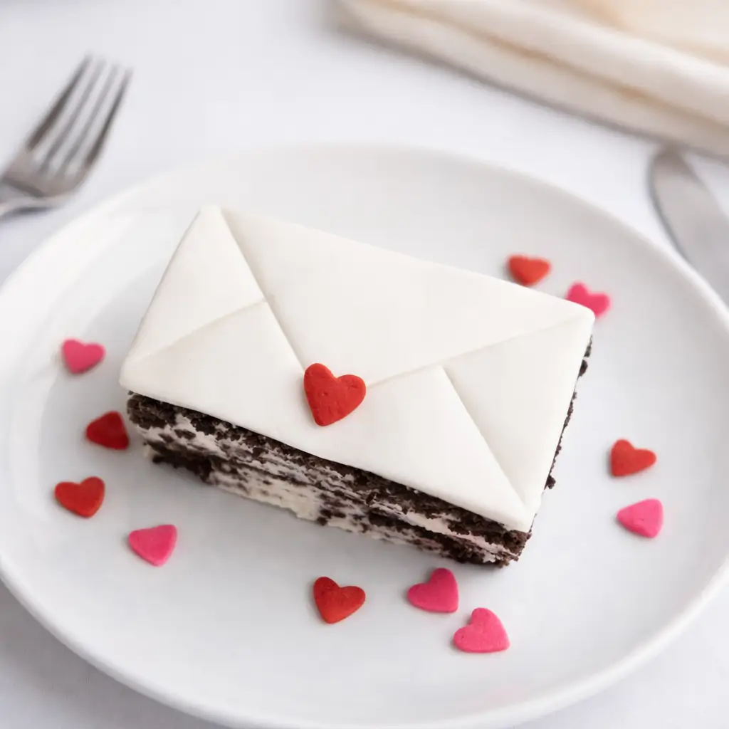 A Love Letter Cake is a charming little dessert shaped like a sealed envelope, made with layers of moist chocolate cake, buttercream frosting, and a glossy fondant “envelope.” Each one is finished with a tiny candy heart, like a sweet stamp of affection. The inspiration comes from the nostalgia of handwritten love notes—those days when words were sealed in envelopes instead of sent through texts. These mini cakes turn that feeling into something edible and utterly delightful. Think of it as a way to bake affection into every bite—perfect for gifting to your partner, friends, or even as an adorable favor for a wedding or engagement party.