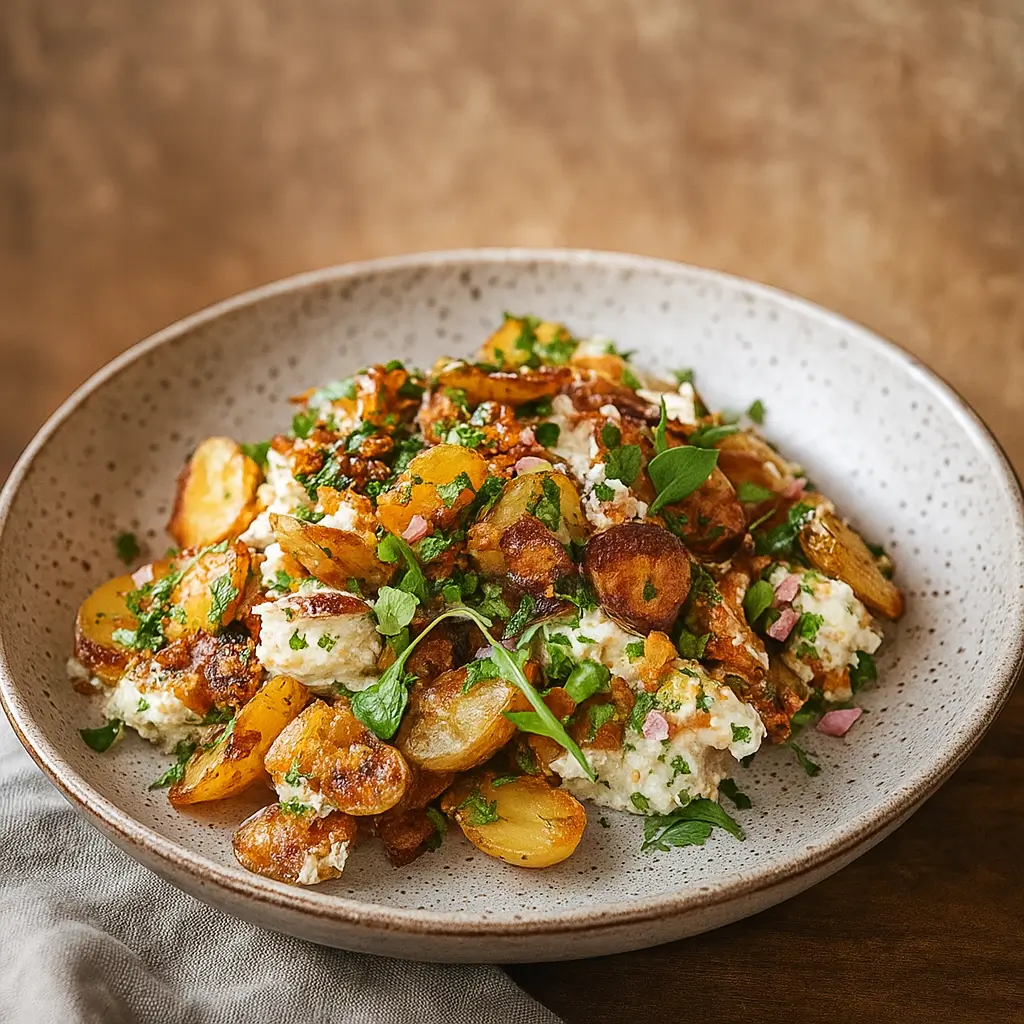 A flavorful smashed potato salad made with baby potatoes, fresh herbs, and a creamy dressing. Crispy on the outside and tender on the inside, this dish combines savory, tangy, and herby elements for a satisfying twist on classic potato salad.