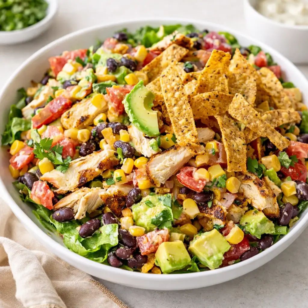 While this salad is a powerhouse on its own, you can easily pair it with a few extras to make it a festive spread. A warm bowl of cheesy chicken tortilla soup is a classic companion that keeps the theme going strong. If you are hosting friends, a side of fresh guacamole and extra salsa is always a hit for dipping those leftover tortilla chips. For a bit of extra protein, some grilled shrimp skewers seasoned with lime and chili can turn this into a five-star feast. If you want to keep it light, a simple side of fruit salad with a squeeze of lime juice provides a sweet finish to the meal. Of course, a cold glass of hibiscus tea or a sparkling lime water is the perfect way to wash down those bold Southwestern spices.