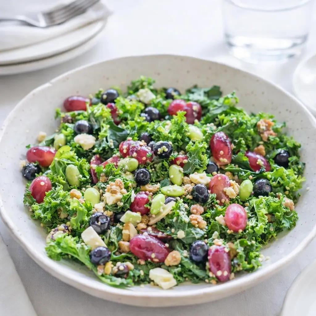 The Twelve Superfoods Salad is one of those recipes that makes you feel like you’re doing something truly good for your body—without actually feeling like you’re eating a “health food.” It’s fresh, colorful, and loaded with nutrients, but it’s also hearty, satisfying, and packed with flavor. Think crunchy kale, juicy grapes, creamy feta, and fluffy quinoa all tossed in a zesty orange-garlic dressing that pulls everything together. The best part? You can throw it together in about 25 minutes, which means it’s perfect for busy weeknights, meal prep lunches, or whenever you just want to feel a little lighter after a weekend of comfort food.